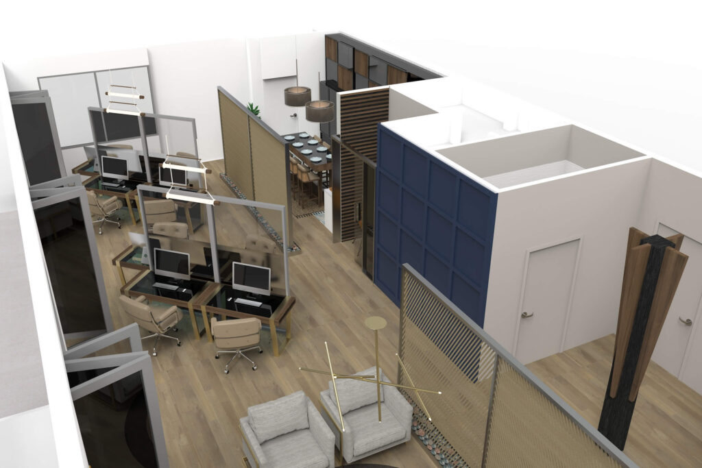 We design and fabricate branded office and architectural environments that bring a company’s identity into physical space through custom signage, millwork, and integrated media.